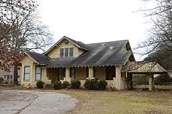 The Clark House is a historic house at 1324 South Main Street in Malvern, Arkansas. It is a 1+1⁄2-story wood-frame structure, roughly rectangular in plan, with a side-gable roof, projecting front-facing cross-gable sections on the left side, and a hip-roofed porch extending to the right. The roof extends over a recessed porch, with exposed rafter ends and brick pier supports. It was built in 1916 in Bungalow/Craftsman style to a design by architect Charles L. Thompson.[2]