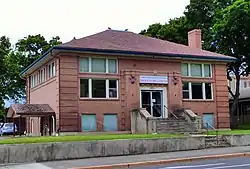 It is a square-plan two-story building of yellow-red brick. It was funded by a $10,000 grant from Andrew Carnegie, obligating the community to spend $1,000 per year in maintenance. As that level of spending was perceived to be onerous for the small city of Clarkston, it was negotiated that the taxing entity to be designated would be the school district, which presumably had a larger base. Lewiston, Idaho architect James H. Nave was commissioned to prepare the designs for an $8,000 building, with the remainder of the funds going towards interior furnishings.[2] In 1981 the library served as a regional library for southeast Washington.[3]