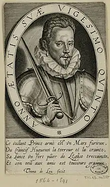 Claude de Lorraine, chevalier d'Aumale (13 December 1564 – 3 January 1591)[1] was a French churchman, noble and military commander during the French Wars of Religion. The second son of Claude, Duke of Aumale and Louise de Brézé, Aumale was destined for a life in the church. His uncles Cardinal Lorraine and Cardinal Guise ensured that he was granted many abbeys, that brought him a sizable income. At the age of 19 in 1583, he travelled to Malta to perform his service as a Knight of the Order of Saint John, finding success in his campaign.