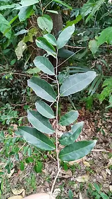 Clausena excavata is a species of evergreen shrub that grows 1โ2 metres (3 ft 3 in โ 6 ft 7 in) tall, in the family Rutaceae, native to Bangladesh, Bhutan, Cambodia, China, India, Indonesia, Laos, Malaysia, Myanmar, Nepal, the Philippines, Taiwan, Thailand, and Vietnam.[2] The plant is commonly by various names, including pink lime-berry, cama, cemama, cemamar, cerek, cerek hitam, kemantu hitam, secerek, semeru, and suntang hitam.[3]