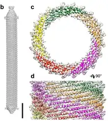 3D reconstruction of the virion structure of Aeropyrum pernix bacilliform virus 1 (APBV1). Scale bar 10 nm.
