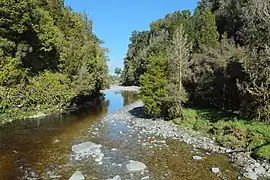 The Clearwater River (Māori: Kairaumati) is on the West Coast of the South Island of New Zealand. The river originates on the northern slopes of Mount Mitchell on the western end of the Victoria Range, only one valley north of the Fox Glacier and Fox River.[1] Clearwater River and its tributary creeks drain land to the north of the Cook River / Weheka. The river flows under a bridge of SH 6 just north of the Fox Glacier township and passes close to Lake Matheson shortly after before flowing into Cook River / Weheka, which drains into the Tasman Sea.