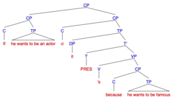 • English if-because cleft: If he wants to be an actor it's because he wants to be famous.[8]