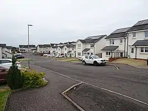 A small length of the platform remained visible until at least 1997 however nothing remains of the station as it has been totally demolished to make way for a housing scheme that now stands on the site of the station and trackbed, however the Station Road name provides a link with the past. The trackbed to the west has a footpath on it. A section of the old trackbed survives running east towards Morningside (Datum 2018).