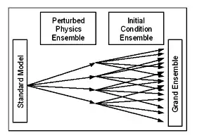 A climate ensemble involves slightly different models of the climate system. The ensemble average is expected to perform better than individual model runs.[1] There are at least five different types, to be described below.