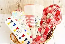 Cloth menstrual pads are cloth pads worn in the underwear to collect menstrual fluid (blood from uterine lining). They are a type of reusable menstrual hygiene product, and are an alternative to sanitary napkins or to menstrual cups. Because they can be reused, they are generally less expensive than disposable pads over time, and reduce the amount of waste produced.[1][2][3]