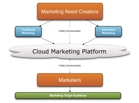 Cloud marketing is the process of an organization's efforts to market their goods and services online through integrated digital experiences, by which they are specialised for every end-user.[1] The aim is to use advertising methods to target customers via online applications through social media websites such as Facebook, Twitter and various online portals to target consumers. Cloud marketing platforms could be supported by third party providers that maintain the platform.