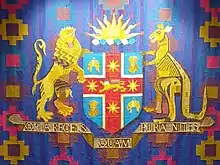 | Supporters | On the dexter side a lion rampant guardant and on the sinister side a kangaroo both or |