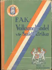 When Cape Colony, Transvaal Colony, Natal Colony, and the Orange River Colony joined together as the Union of South Africa, it was determined that as a dominion within the British Empire, South Africa should have its own symbol. In 1910, King George V issued a royal warrant for a coat of arms for the Union of South Africa. The arms were then used to create the South Africa Red Ensign used unofficially as the national flag of South Africa until 1928, when the Oranje, Blanje, Blou was adopted. However, the South Africa Red Ensign continued to be used at sea as the merchant ensign until 1951.[5] In 1930, the London-based artist Kruger Gray designed an embellished version of the arms, which was officially adopted by the College of Arms in 1932.[6] In 1961, following the declaration of the Republic of South Africa, the Republic of South Africa Constitution Act made no reference to changing the coat of arms, and therefore the 1910 grant was retained.[7]