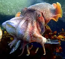 Cephalopods are capable of active camouflage, by day used for signalling as well as camouflage. At night, 86% of giant Australian cuttlefish, Sepia apama, were seen to select camouflage patterns. Most often (41%), these were disruptive, the patterns coinciding across the cuttlefish's body parts.[7]