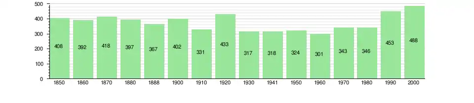 Collonges has a population (as of December 2020) of 832.[6] As of 2008, 10.5% of the population are resident foreign nationals.[7] Over the last 10 years (2000–2010 ) the population has changed at a rate of 6.5%. It has changed at a rate of 5.5% due to migration and at a rate of 2% due to births and deaths.[8]