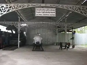 Colombo Terminus Station was the primary railway station in Colombo, Sri Lanka in the nineteenth century. It was retired from service at the beginning of the twentieth century and replaced by Maradana Station. The preserved building is now home to the National Railway Museum.[1]