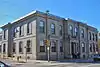 1860 | New facade 1940. Three stories in brick with stone and pressed metal in the Georgian Revival style. |