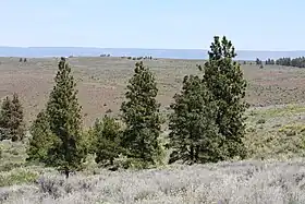 The Columbia Plateau ecoregion is a Level III ecoregion designated by the United States Environmental Protection Agency (EPA) encompassing approximately 32,100 square miles (83,139 km2)[1] of land within the U.S. states of Washington, Oregon, and Idaho. The ecoregion extends across a wide swath of the Columbia River Basin from The Dalles, Oregon to Lewiston, Idaho to Okanogan, Washington near the Canada–U.S. border. It includes nearly 500 miles (800 km) of the Columbia River, as well as the lower reaches of major tributaries such as the Snake and Yakima rivers and the associated drainage basins. It is named for the Columbia Plateau, a flood basalt plateau formed by the Columbia River Basalt Group during the late Miocene and early Pliocene. The arid sagebrush steppe and grasslands of the region are flanked by moister, predominantly forested, mountainous ecoregions on all sides. The underlying basalt is up to 2 miles (3 km) thick and partially covered by thick loess deposits.[2] Where precipitation amounts are sufficient, the deep loess soils have been extensively cultivated for wheat. Water from the Columbia River is subject to resource allocation debates involving fisheries, navigation, hydropower, recreation, and irrigation, and the Columbia Basin Project has dramatically converted much of the region to agricultural use.[2][3][4]