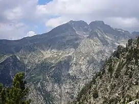 This mountain is within the Aigüestortes i Estany de Sant Maurici National Park.