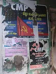 Communist Marxist Party (CMP) is a political party in Kerala. The party was founded in 1986 when CPI(M) leader M. V. Raghavan was expelled from the CPI(M) due to a grave difference of opinion regarding the formation of alliances with the IUML. His support for forming a united front with non-secular parties such as the Muslim League in order to take on alliances led by the INC was ultimately rejected by the CPI(M) leadership. He was subsequently expelled from the Party.[1][2]