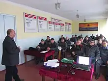 As part of the project, the OSCE sent unarmed police advisers to several districts across Kyrgyzstan and donated 18[7] mobile police receptions—minivans with basic equipment needed for a mobile police reception—to re-establish and increase police presence in remote areas.[8][9] In 2011–2015, over 80,000 people approached the mobile police receptions.[10]