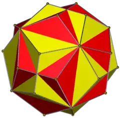 This uniform polyhedron compound is a composition of 2 icosahedra. It has octahedral symmetry Oh. As a holosnub, it is represented by Schläfli symbol β{3,4} and Coxeter diagram .