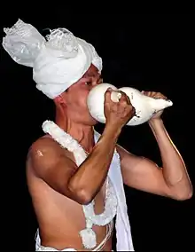A classical Meitei musical performing art of blowing Moibung (Meitei for 'conch shell') of Manipur