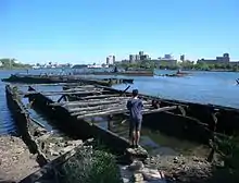 In 2020, the city planned to build a NYC Ferry dock along the creek off Kaiser Park.[26] The ferry dock would be the terminal of a new route to Pier 11/Wall Street; the route, announced in 2019, was to have begun operations in 2021.[27][28] Local activists rallied against the dock plan, arguing it would disrupt the ecosystems of the creek.[29] There were also concerns that the addition of ferry service would worsen pollution in the creek.[30][31] The implementation of the Coney Island ferry route was delayed and, in mid-2022, the EDC announced that the ferry route had been postponed indefinitely. One problem was that the sand in the Coney Island Creek shifted frequently, hampering efforts to construct a ferry pier there.[32][33] Another issue was that the creek itself was heavily polluted, and a Superfund cleanup project was being planned for the creek.[32][34] Independent news site Hell Gate subsequently reported that test boats had repeatedly run aground in Coney Island Creek and that sand had returned to the creek after it was partially dredged in 2021.[35][36]