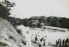 The first party of volunteers left England in April 1889 and reached Matadi in August 1889, from where they trekked upstream to Stanley Pool. The society was given enough money to buy a side-paddle steamer named the Pioneer, which was shipped to the Congo, arriving in December 1889. The boat was then carried in sections to Stanley Pool where it was rebuilt and launched. By March 1891, first using the Henry Reed and then the Pioneer, the CBM missionaries had established stations.at Bonginda, Lulonga, Ikau and Bongandanga.[6] During the years that followed many of the missionaries died of accidents or diseases such as malaria and sleeping sickness, to be replaced by fresh volunteers. Only six of the first thirty five CBM missionaries were alive by 1900.[5]