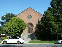 A group of mostly of Yiddish-speaking immigrants from Russia and elsewhere in Eastern Europe split off from Congregation Montefiore in 1916 to form Congregation Sharey Tzedek,[2] Utah's third Jewish congregation. The group raised $33,200 to buy the land and build a synagogue.[2] The building was built by general contractor John E. Anderson, and it was completed in 1920.[2] Utah Governor Simon Bamberger spoke at the dedication on March 28, 1920.[2] When the synagogue was built, its front had circular windows that contained colored glass with a star of David.[2] Rabbi Joseph Strinkomsky served as the congregation's first rabbi.[2] Services were in line with Orthodox Judaism, with different seating areas for men and women.[2] Most of the members lived within a short walk of the synagogue, and they shopped at a kosher butcher nearby.[2]