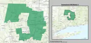 Connecticut's 1st congressional district is a congressional district in the U.S. state of Connecticut. Located in the north-central part of the state, the district is anchored by the state capital of Hartford. It encompasses much of central Connecticut and includes towns within Hartford, Litchfield, and Middlesex counties.