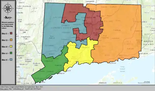 Table of United States congressional district boundary maps in the State of Connecticut, presented chronologically.[4] All redistricting events that took place in Connecticut between 1973 and 2013 are shown.