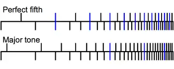 - Frequency ratios: When harmonic timbres are played in a Just intonation (or a sufficiently close approximation thereof), ratios of higher simple numbers are more dissonant than lower ones.[30] However, the farther the timbre departs from the harmonic series, and/or the farther than the tuning departs from a Just Intonation, the less the "frequency ratio" rule applies.[31]