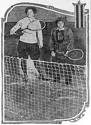 In January 1916, Meyer rejoined the Portland women's hockey team and served as team captain.[16] Meyer took up tennis for the first time in June 1916. That month, she was the runner-up in a Multnomah Athletic Club tennis tournament.[17]