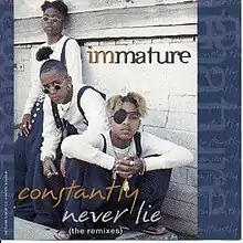 "Constantly" is a song by IMx (then known as Immature), issued as the second single from the group's second album Playtyme Is Over. The song peaked at #16 on the Billboard Hot 100 in 1994.[3] It was also the group's second consecutive gold single, having been certified on March 28, 1995.[4] The official music video for the song was directed by Steven Blake.[5]
