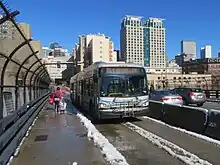 In certain situations, reversible lanes will be contraflow for a portion of the day. The Lincoln Tunnel XBL to the Lincoln Tunnel is a contraflow exclusive bus lane for buses during the morning peak period.[1] The XBL lane is fed by the New Jersey Turnpike at Exits 16E and 17, and New Jersey Route 3. The helix, tunnel, and terminal are owned and operated by the Port Authority of New York and New Jersey, the bi-state agency that also operates the 2.5-mile (4.02 km) contraflow lane along the left lane of three westbound lanes. The XBL serves over 1,800 buses, which transport more than 65,000 persons, each morning and is a major component of the morning "inbound" commutation crossing the Hudson River.[1][2][3][4][5]