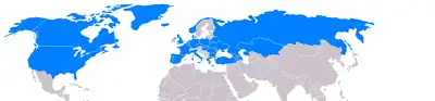 NATO immediately expressed regret over Russia's decision to suspend the treaty, describing it as "a step in the wrong direction", but hoped to engage Moscow in what was described as constructive talks on this issue.[37] The United States along with European states such as Germany, Poland and Romania also expressed their disappointment.[38] Collective Security Treaty Organisation (CSTO) General Secretary Nikolai Bordyuzha and former Soviet president Mikhail Gorbachev expressed support for Putin's decree.[39] On 25 November 2011, the UK stopped sharing military data with Russia.[40]