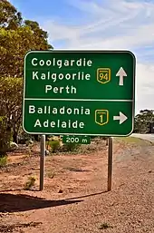 Coolgardie–Esperance Highway is a 370-kilometre (230 mi) Western Australian highway between Coolgardie and Esperance. It runs in a north–south direction linking the state's Eastern Goldfields to the coast.[3]
