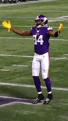 Cordarrelle Patterson (/kɔːrˈdɛrəl/ kor-DERR-əl;[1] born March 17, 1991), nicknamed "Flash", is an American football player for the Atlanta Falcons of the National Football League (NFL). A versatile utility player, he plays running back, wide receiver, return specialist, and occasionally on defense. Patterson played college football at Hutchinson Community College before transferring to Tennessee, where he earned First-team All-SEC honors. He was selected by the Minnesota Vikings in the first round of the 2013 NFL Draft. He has also been a member of the Oakland Raiders, New England Patriots with whom he won Super Bowl LIII, and the Chicago Bears.