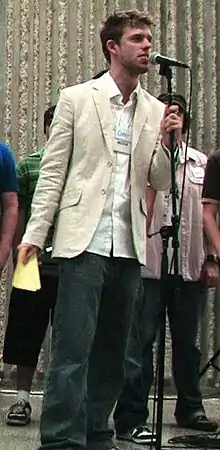 ![]() Corey Vidal hosting the 888 YouTube Gathering in Toronto, 2008 | |||||||