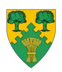 Per chevron embattled Or and Vert, in chief two oak trees and in base a garb counterchanged.[12] | |