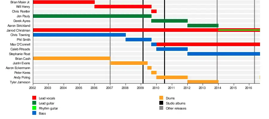 - Jarrod Christman - rhythm guitar, clean vocals (2002–2016), lead guitar (2014–2016)