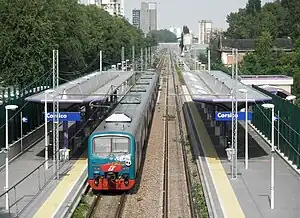 Corsico is served by line S9 of the Milan suburban railway service, operated by the Lombard railway company Trenord.[3]