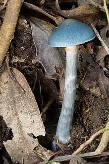 Cortinarius rotundisporus, also known as the elegant blue webcap, is a basidiomycete mushroom of the genus Cortinarius found in southern Australia, where it is found in eucalypt forests and rainforests. The cap of the fruit body is a steely blue colour, with a yellowish boss, and paler similarly coloured stipe.