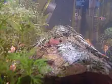 An aquarium for this species should be well furnished, ideally with a mixture of live aquatic plants, and solid furnishings providing caves, sheltered areas and hiding places to give the fish security. Floating plants to provide additional areas of shade are also welcomed by the fish.