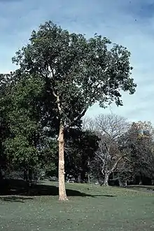 This eucalypt grows in forest, mainly on flat areas with sandy soil. It is found between Springsure, Rolleston, Eidsvold, Gayndah and the Barakula State Forest.[2][3]
