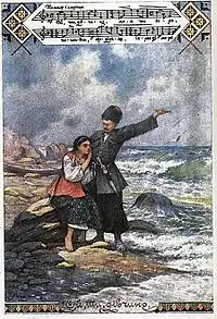 English: Cossacks whistled during a march at midnight". Amvrosiy Zhdakha 1911—1914 years
