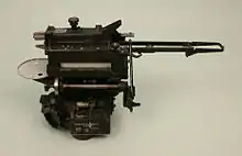 On early models, rotating the compass face also rotated a shaft that ran forward under the main body of the bombsight and through a metal tube running out the lower front of the main housing. On later models, a large knob known as the milled head was placed directly behind the compass and drove this shaft independently of the compass face, allowing calculations to be carried out without changing the bombsight settings.[25] The rotating shaft ran to the wind bar located in front of the body of the gunsight. The rotation of this bar to the selected angle mechanically represented the wind vector relative to the aircraft.[26] At the end of the wind bar is the wind screw knob, which is used to set the wind speed. As the knob is rotated, a plate inside the wind bar moves fore and aft along the direction of the bar.[26]
