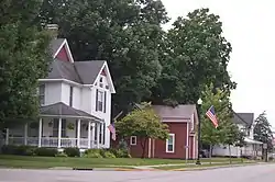 Covington Residential Historic District is a national historic district located at Covington, Fountain County, Indiana. The district encompasses 109 contributing buildings in a predominantly residential section of Covington. It developed between about 1830 and 1958, and includes notable examples of Gothic Revival, Federal, Greek Revival, Italianate, Queen Anne, and Colonial Revival style architecture. Located in the district are the separately listed Carnegie Library of Covington, Fountain County Clerk's Building, and William C.B. Sewell House. Other notable contributing buildings include the Senator Daniel W. Voorhees House (c. 1880), Ward House (c. 1890), Kid & Mary DeHaven House (1880), Bisland House (1910), Spinning House (c. 1898), Mayer House (1907), Johnson House (c. 1915), Ristine-Savage House (1852), J. D. Fine Boggs House (1923-1924, Livengood House (c. 1930), Enos H. Nebeker House (1894), Hamilton-Reed House (c. 1835, 1886), Covington Methodist Church (1889), Clark House (c. 1865), and Allen-Cates House (c. 1870).[2]