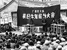 Once someone was labeled as a "cow demon", they were to become imprisoned in a cowshed, storehouse or dark room.[1] Illegal prisons during the Cultural Revolution were called "cowsheds" (牛棚), and exiles to the countryside were sometimes called "down to cowsheds" (下牛棚).