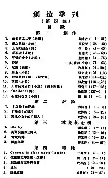 Creation Quarterly (创造季刊) was a Chinese literary quarterly magazine founded in 1921 and published between 1922 and 1924.[1][2][3]