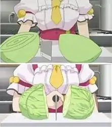 A badly animated cabbage in the third episode generated an Internet meme in Japan where people on 2chan posted fanart of Feena with the spherical cabbage with concentric leaves and, changing two kanji symbols, referred to the series as Brighter than Dawning Green -Cabbage Love- (夜明け前より黄緑色な -Cabbage Love-, Yoake mae yori kimidori iro na -Cabbage Love-).[12] Eventually, the DVD version of the anime was given a smoother look and visibly better animation (albeit without a change in storyline). The aforementioned badly-drawn cabbage was also redrawn correctly.