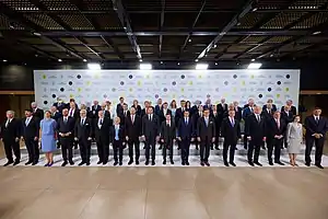 The Crimea Platform (Ukrainian: Кримська платформа, romanized: Krymska platforma; Crimean Tatar: Qırım Platforması) was a diplomatic summit initiated by Ukrainian Volodymyr Zelenskyy in August 2021 and attended by delegations from 46 countries.[1][2] It is designed to be an international coordination mechanism to restore Russia–Ukraine relations by means of reversing the 2014 annexation of Crimea by the Russian Federation. The protection of the human rights of Crimean Tatars, environmental degradation and the stifling of trade in the Black and Azov Sea region are also matters discussed at the summit.[3]