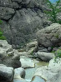 ![]() A waterfall in the Crimean Mountain karst | |